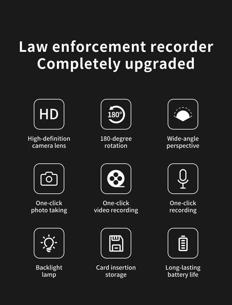 Designed for law enforcement use, this body camera meets CE certification standards, ensuring reliability and compliance.