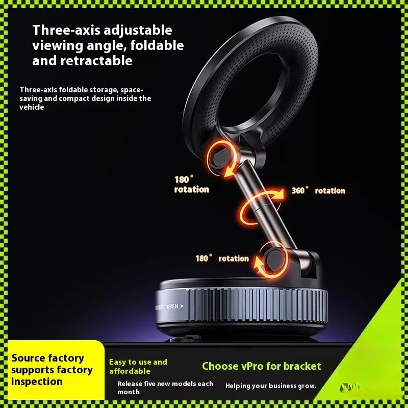 Foldable Double-Sided Magnetic Bracket with Suction – Easy Install & Retractable Design